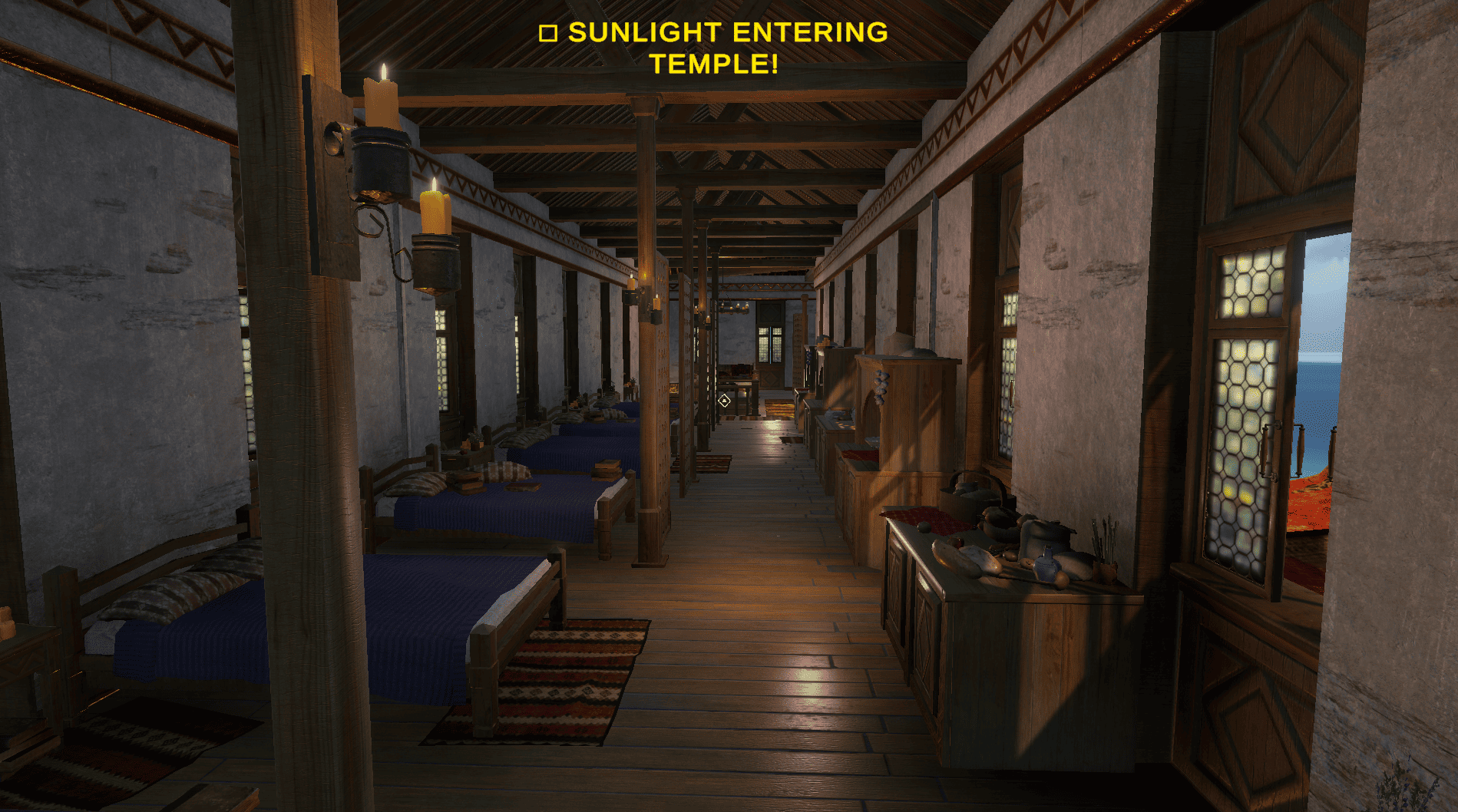 Players must explore the island, recover the lost mirrors, and place them inside the temple. By rotating and aligning them, the sunlight can be reflected along a star-shaped path toward the central statue, unlocking the temple’s hidden chamber.